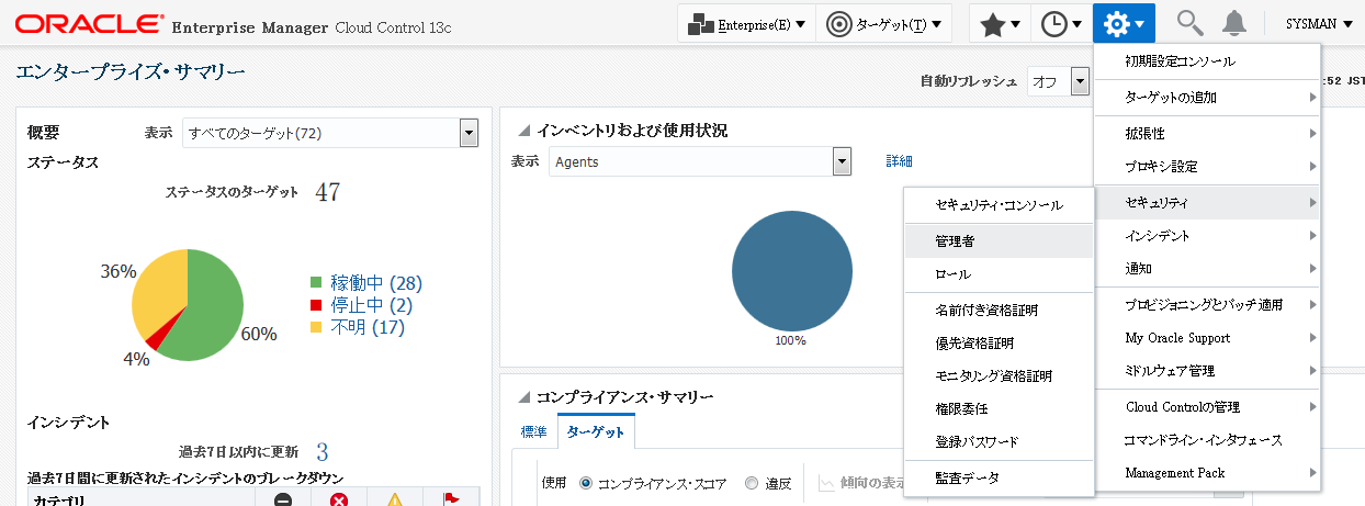 EM管理者には閲覧する必要の無いDBの画面が表示でき、DB管理者にはEMCC全体を管理するための権限が不要に割り当てられ、アプリケーション担当者には担当外のDBをEMCC上で閲覧する権限が付与されます。(DBとEMCCのログインユーザは異なるため、EMCC上として強力な権限が付与されていた場合でもDBに対してのログインはできません。) この様な状況では、セキュリテイ・インシデントが発生した場合に、EMCCのユーザを共有しているがために、誰が不正な操作を実施したのかを把握することができません。