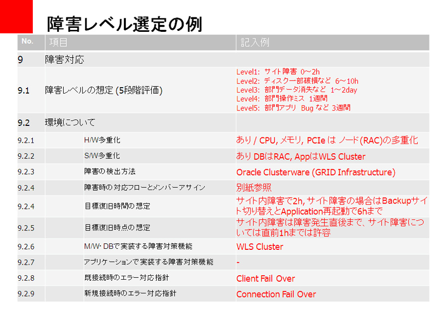 このような詳細はSLA定義/障害レベル選定があって初めて、経営層やBCP対策推進室が求めるBCPが実効性のあるものにな