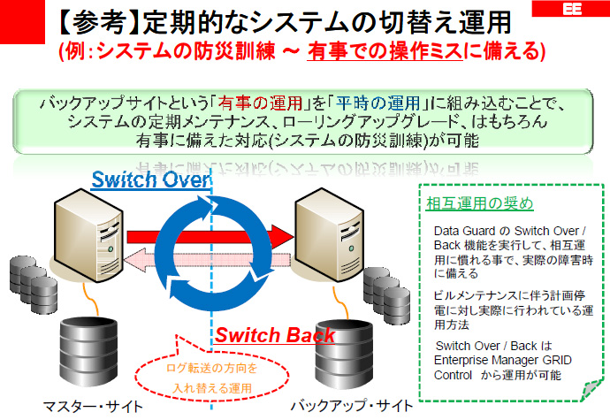 Guardは、スタンバイ環境に切り換えるスイッチオーバーと、本番環境に切り戻すスイッチバックの仕組みを備えている。この仕組みを利用し、半年に1
