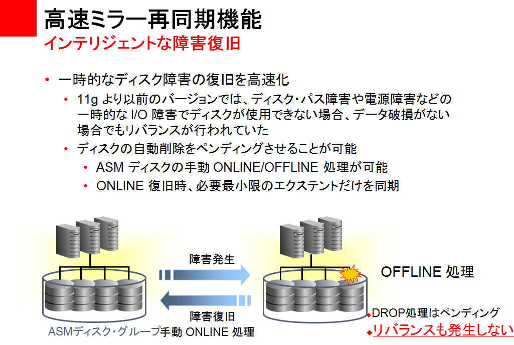 ASMでは従来、ディスク破損を伴わない一時的なI/O障害でも不要なリバランスが行われていた。そこでOracle Database 11g