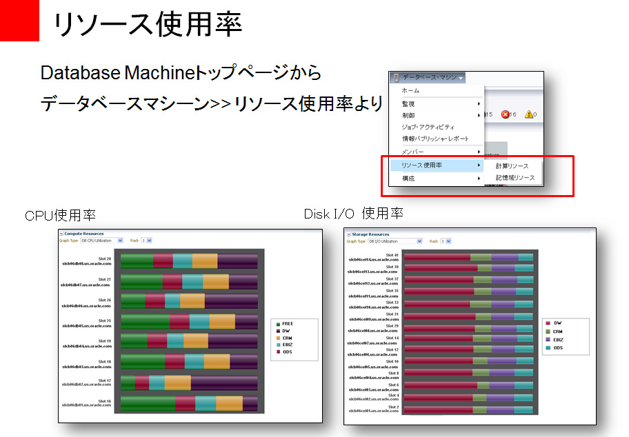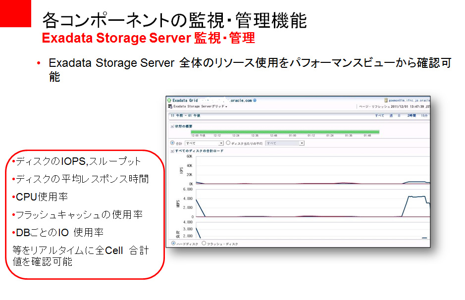 使ったキャッシュ機構である「Exadata Smart Flash Cache」の使用率などについて、1台ごとの情報だけでなくExadata