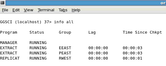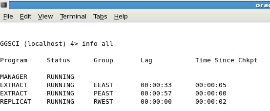 6. Note também que todos os processos foram mantidos. Após a atualização, você pode reiniciar os processos normalmente, o OGG voltará a processar as transações do ponto em que havia parado antes da atualização.