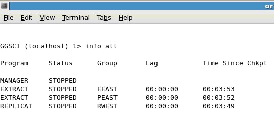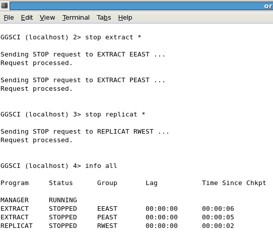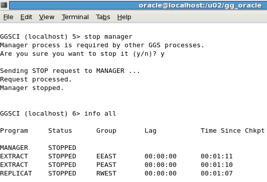 3. Por fim, pare o processo Manager. Feche o GGSCI.