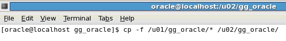 4. Copie todos os arquivos da versão 11g (instalados no diretório temporário) para o diretório atual da versão 10.4 do OGG. Neste exemplo, vamos copiar todos os arquivos do diretório /u01/gg_oracle (temporário) para /u02/gg_oracle.