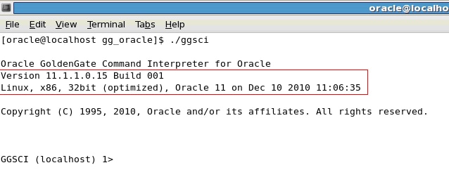 5. Execute o GGSCI (./ggsci) e note a alteração na versão.