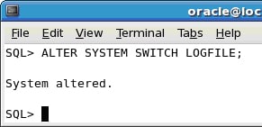 7. Para garantir que os online redo logs subsequentes contenham os dados do log suplemental mínimo, realize um log switch no banco de dados com o seguinte comando ALTER SYSTEM SWITCH LOGFILE;. Ao finalizar, feche sua conexão com o banco de dados.