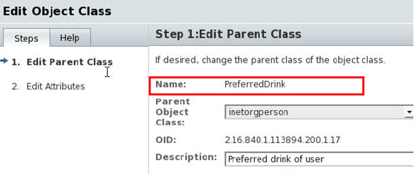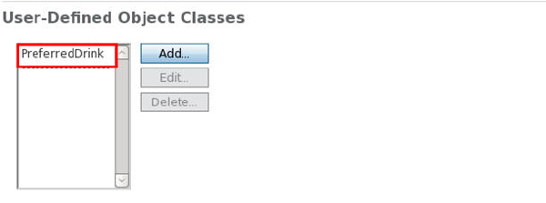 Verify that the object class PreferredDrink does not exist in the object classes listed for beverage anymore: Select beverage in Schema tab > Attributes > User-Defined Attributes and click Edit. Verify that PreferredDrink is not listed in Used as Allowed by field and click OK.