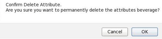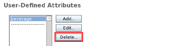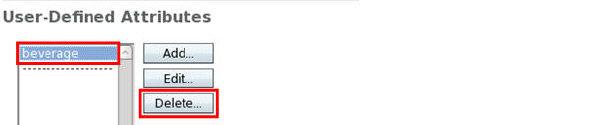 Verify that the attribute beverage does not exist anymore: Go to Schema tab > Attributes > User-Defined Attributes and verify that beverage is not listed in User-Defined Attributes.