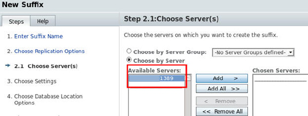 Choose Directory Server ending in 2389 from the Server drop down list and click OK.