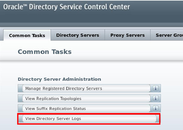 In DSCC, navigate to Common Tasks > Directory Server Administration > View Directory Server Logs.