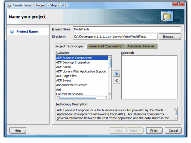 Once you finish the wizard, Oracle JDeveloper will create the following files in the ModelTests project:
