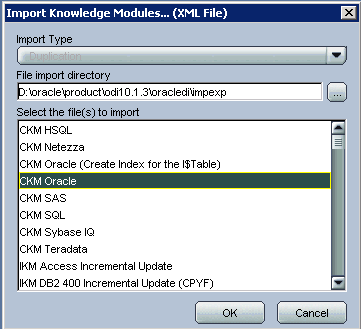 Next we import the CKM. Go through the same steps as above and this time select CKM Oracle. Click OK.