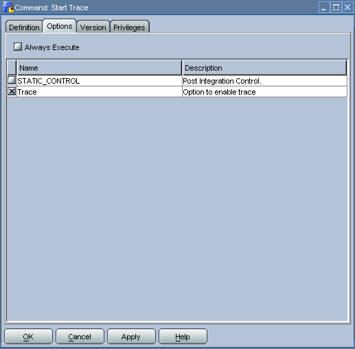 From the Options tab, we can see that we do not always enable tracing (the Always Execute check box is not selected). Whether tracing is enabled is determined by the value of the Trace option.