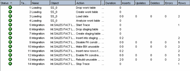 Note that I ran an extended trace against the implicit cursor. For each constraint on the Sales target table, Oracle Data Integrator sent an ALTER TABLE... statement to the database server. Because there are five foreign keys on the Sales table, we end up with five ALTER TABLE... statements.