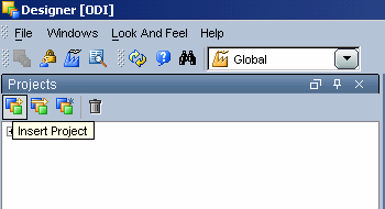 To start off with, we highlight the Projects tab and create a new project by clicking the Insert Project icon.