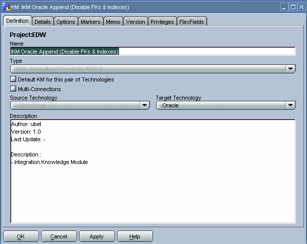 In the next couple of steps, we insert records into the target table, re-enable foreign key constraints, make bitmap indexes reusable, and disable tracing. For more details on these individual steps, I have made an export of the KM. (Recall that at the beginning of this article, you saw a link for downloading the IKM, with instructions on how to import it into Oracle Data Integrator.)