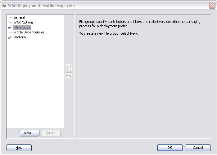 Click the File Groups node in the left most region of the War Deployment Profile Properties dialog and click New.
