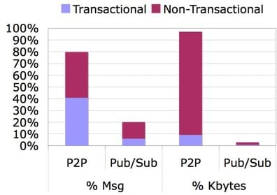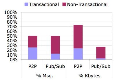 - 50% P2P messages and 50% pub/sub.