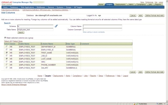 There is also a facility to manually add dependant columns, which can be columns referencing the masked column at the application level, since some applications, such as Oracle E-Business Suite and Oracle PeopleSoft applications, do not use foreign keys in the database but instead prefer to handle referential integrity at their code level.