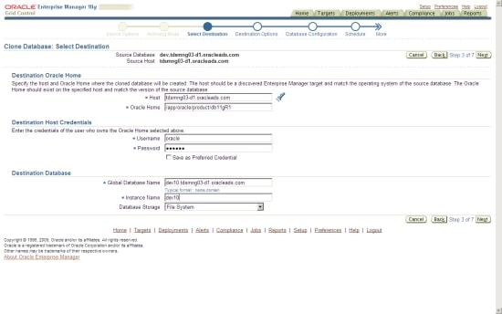 This brings up the Clone Database wizard page (see Figure 23).