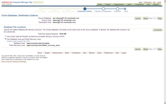 On the same page, you can also specify the network configuration files, the post cloning scripts (if required), and whether to register the newly cloned database in Oracle Enterprise Manager Grid Control (so it appears as a new database target).