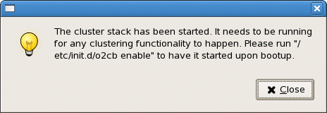 If the O2CB cluster is offline, start it. The format operation needs the cluster to be online, as it needs to ensure that the volume is not mounted on some other node in the cluster.