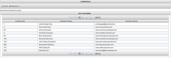 The PrimeFaces DataTable component can be customized very easily, making it easy to develop a highly sophisticated table for displaying and updating application data. For example, the PrimeFaces DataTable component provides various options for editing without leaving the table view. If you take a look at the List views that were generated for the AcmePools project by NetBeans, you will see that the DataTable components have been customized to add selection listeners. For instance, Listing 5 shows the DataTable that is included within the customer/List.xhtml view.
