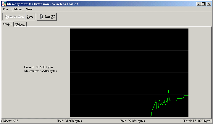 The J2ME Wireless Toolkit 1.0.4 includes a profiler, a tool that collects statistics on your application as it runs. After the run ends, you can see which methods in your application were called, how many times they were called, and how much time these calls took.