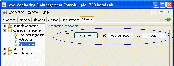 If you use Java SE 6 build 95 or earlier, the dumpHeap operation takes only the first argument and dumps only live objects.