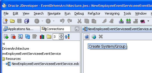 When you register your project with the ESB server, the system or service group you create will be available within the ESB Console. Services are part of a System or a Group within a System. Systems and Groups provide a means of organizing services - not unlike scopes in BPEL processes. One important aspect of Systems is that Target Services in different Systems will be called in parallel from a Routing Service while Target Services in the same System will be invoked sequentially.