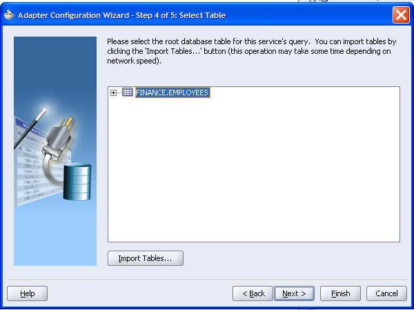 Click on Next ; you go to the Select Table page. Click on Import Tables to select the EMPLOYEES table in the FINANCE database.