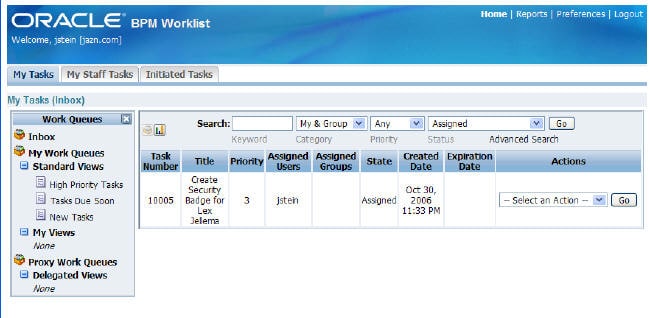If you go to the Worklist Application, logging in as JSTEIN - the security officer currently assigned all tasks for creating security badges for new employees:
