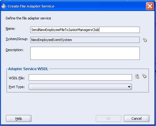 Enter the name for the service. Then click on the Define Adapter Service icon next to the WSDL File field.