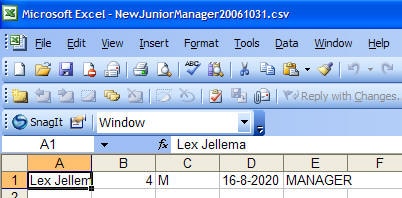 - The Junior Managers Club has stipulated that it wants to receive word of new Junior Managers via a CSV file written to a specific location on the file system. It has provided a sample file to indicate the exact format of that file.
