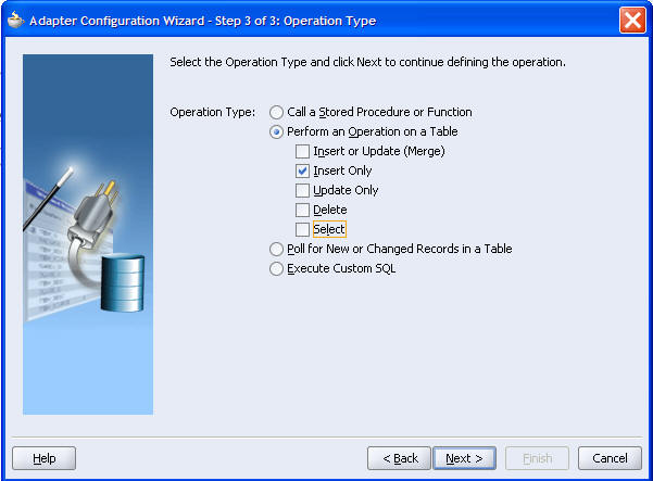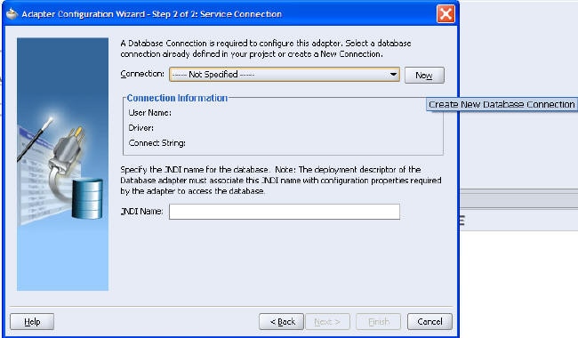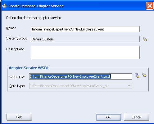 Enter the name for the Adapter Service and click the first icon after the WSDL File field, to configure the database adapter.