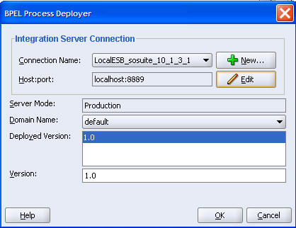 Select the correct Application Server Connection - the one you just created. Also specify the correct port number. (The file SOA_SUITE_HOME\install\esbsetupinfo.txt may provide the correct information on the port.)