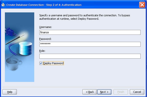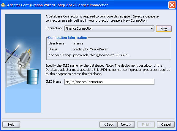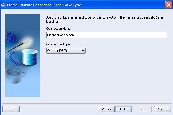 Create a New Database Connection, to connect to the FINANCE schema in the corporate database. (Note: Create a connection to the database schema in which you created the EMPLOYEES table during "Initial Setup."):