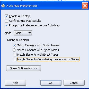 Press OK . You go into the Mapper tool. Here you connect two XSD documents, thereby defining an XSLT to transform from the source XSD to the target.