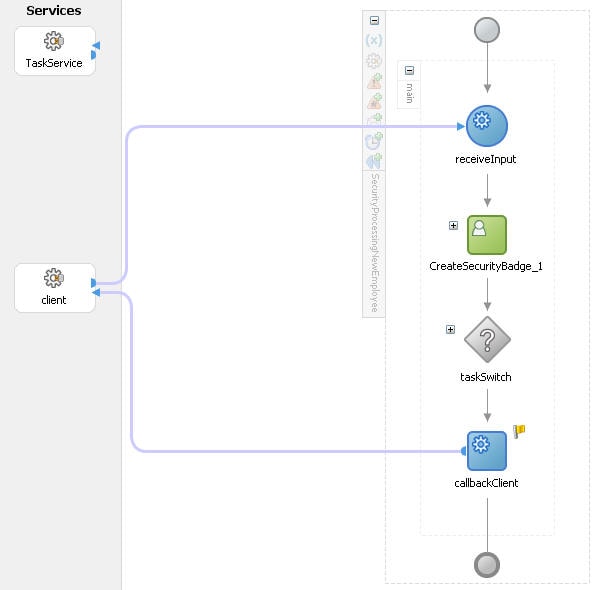 - The Security Department has a Web Service endpoint to be invoked - in fact that is just the front of a BPEL process that will be run inside the Department, including Human Workflow that involves the creation of the physical badge.
