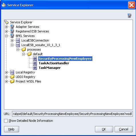 Select the SecurityProcessingNewEmployee service (that is already deployed on the BPEL PM instance).