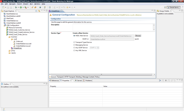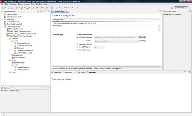 Next step is to define the Business Service for the OrderWebService that will be used in this project.