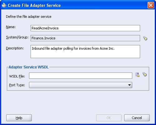 A routing service for this inbound file adapter, called ReadAcmeInvoice_RS, is automatically added to the project when the file adapter wizard is completed. This adapter provides routing and transformation capabilities.