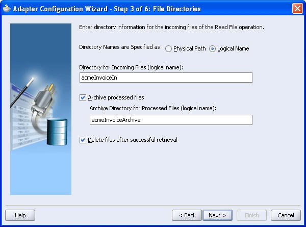 7. Step 3: Archive Directory for Processed Files (logical name): acmeInvoiceArchive.