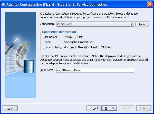 3. Step 2: Make sure the JNDI name exactly matches the JNDI location you specified during the Oracle Application Server database adapter configuration. This should be eis/DB/invoiceDemo.