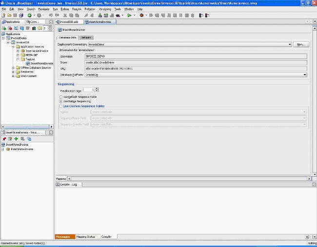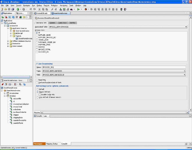 6. Select the InsertAcmeInvoice TopLink map by navigating to Application Sources → TopLink → InsertAcmeInvoice in the Applications Navigator. Double-click it to open the map and change the following values:
