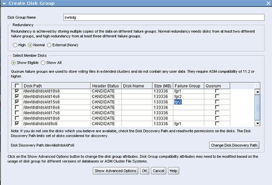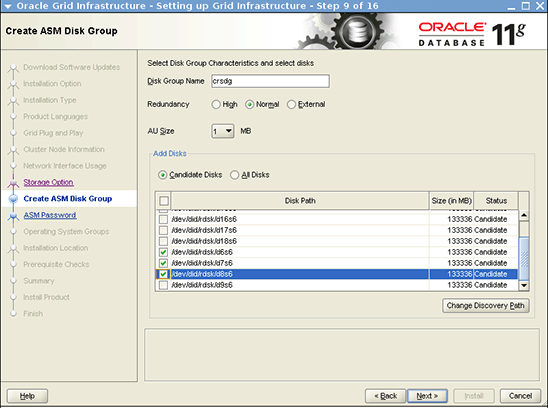 Figure 14. Select ASM Disk Group Page