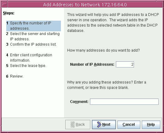 n. Type the number of IP addresses and click Next.