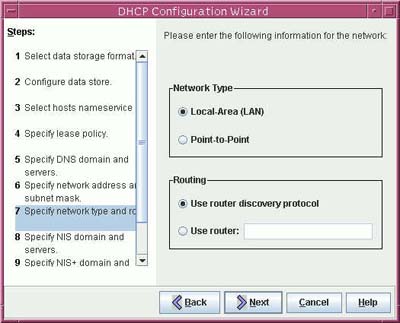 i. Select the network type and routing option and click Next.