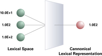 Figure 2: Many literals in the lexical space map to exactly one literal in the canonical lexical representation.