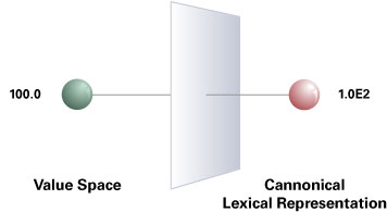 Figure 3: There is always a one-to-one mapping from the value space to the canonical lexical representation.